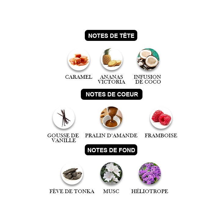 Une ouverture sucrée et ensoleillée, où le caramel fondant rencontre l’exotisme de l’ananas Victoria et la douceur lactée d’une infusion de coco.